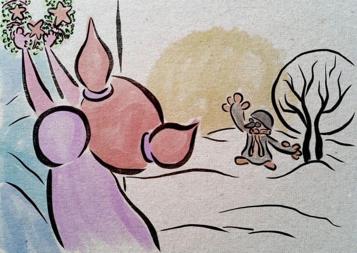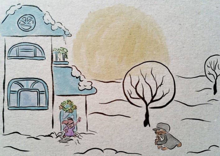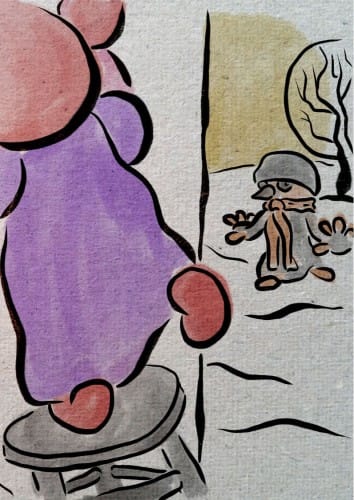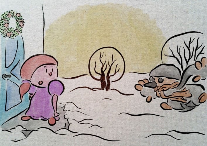 En julsaga inspirerad av dikten "Sparven om julmorgonen" av Zacharias Topelius berättad med Peter Hertzbergs textfria illustrationer för att kunna upplevas till fullo av alla, oberoende av ålder eller språk. Topelius skrev dikten till minnet av sin son Raphael som dog ett år gammal våren innan. Nu är dikten mera känd som en julsång av Otto Kotilainen...